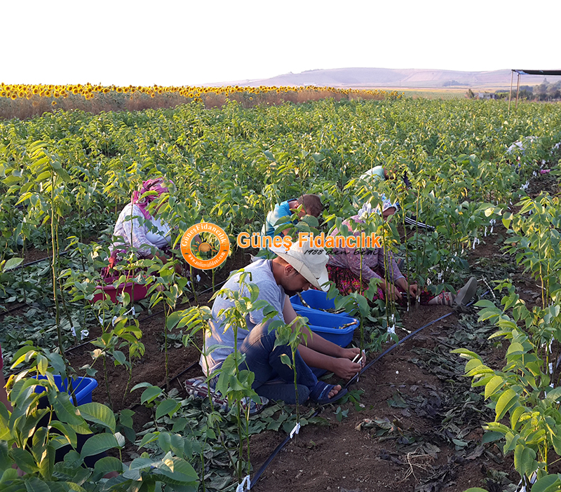 Tohum olarak ekilen açık köklü ceviz fidanları, bir buçuk yıl boyunca tarlada büyümeye bekletildikten sonra ikinci yılında gerekleri aşıları ve diğer kontrolleri yapıldıktan sonra paketlenerek gönderime uygun hale getirilir.